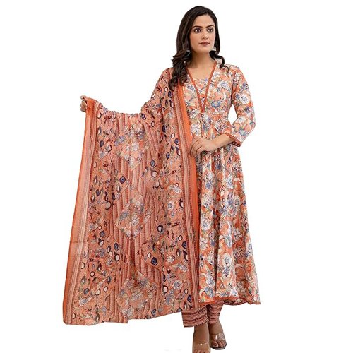 Step out in style! This Anarkali Kurta Set with 3/4 sleeves and beautiful print is perfect for any occasion—from parties to festivals. Made with comfortable cotton fabric and a matching dupatta. Click to get this must-have gift!